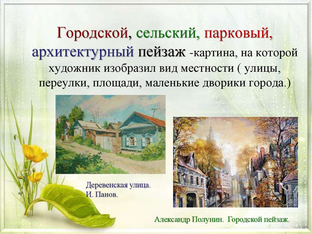 Разновидности жанра городской пейзаж История жанра городской пейзаж