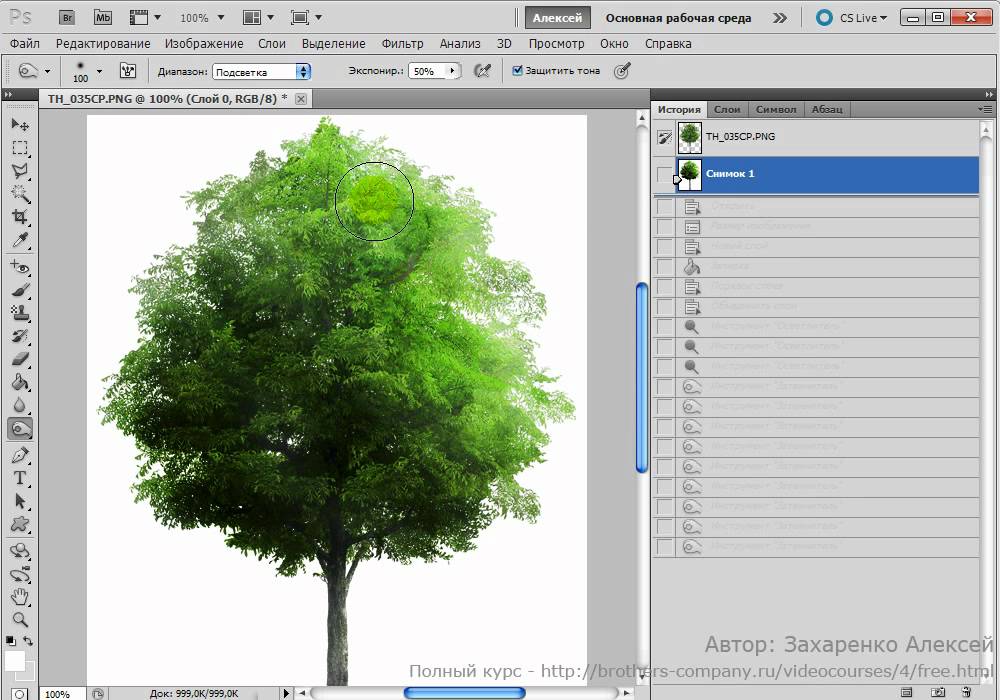 Инструмент «Осветление» используется для осветления областей изображения. Просто выберите инструмент и задайте атрибуты кисти. Затем наведите курсор на область изображения, которую хотите осветлить.