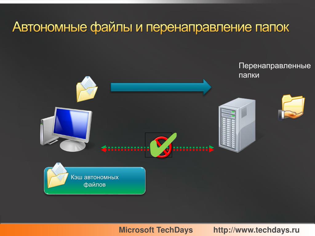 В этой статье описано, как отключить функцию кэширования «Автономные файлы» для отдельных папок, которые перенаправляются в общие сетевые папки с помощью функции «Перенаправление папок». Вы можете локально исключить из кэширования определенные папки, уменьшая размер кэша автономных файлов и время, затрачиваемое на синхронизацию автономных файлов.