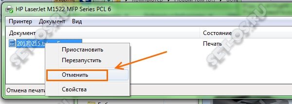 принтера есть несколько заданий, нажимайте на кнопку Отмена