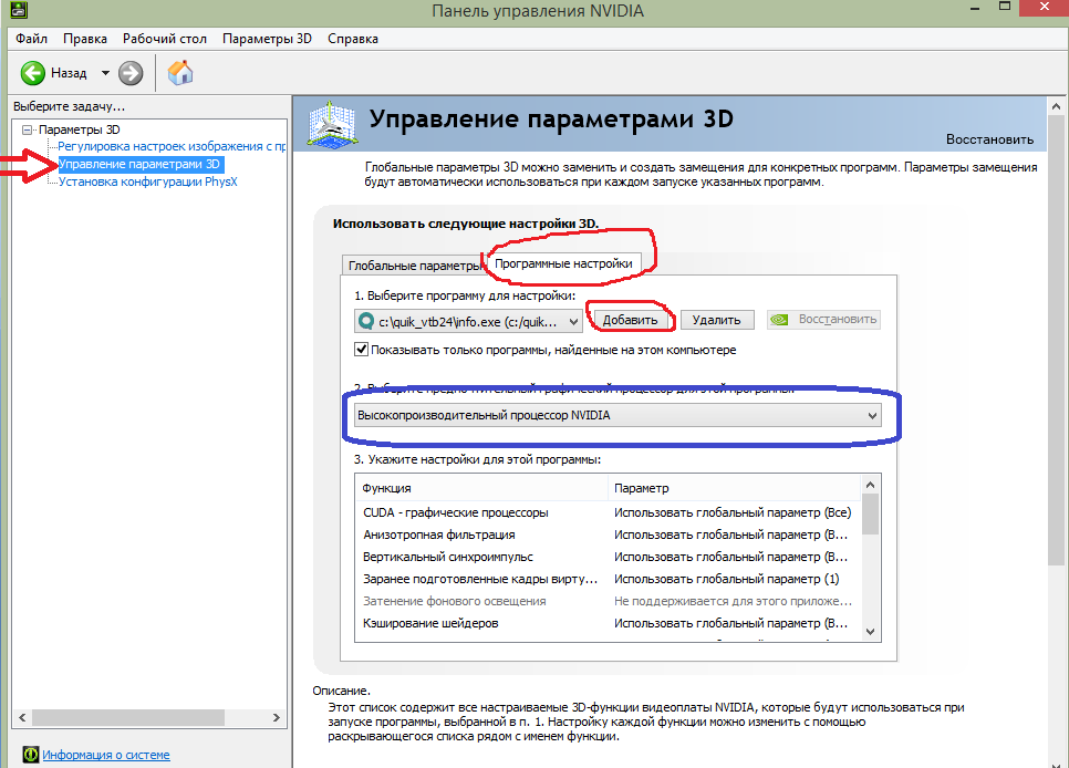 Эти параметры можно применять глобально или настраивать для отдельных приложений. Вы также можете выбрать предпочитаемый графический процессор или позволить компьютеру решить, исходя из доступной мощности и требований приложений.