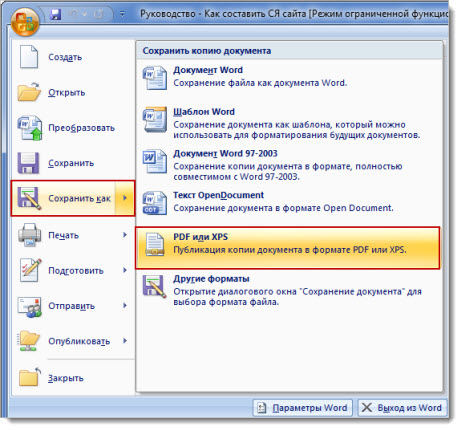 Теперь давайте рассмотрим как же сделать перевод Word в PDF прямо в программе Word.