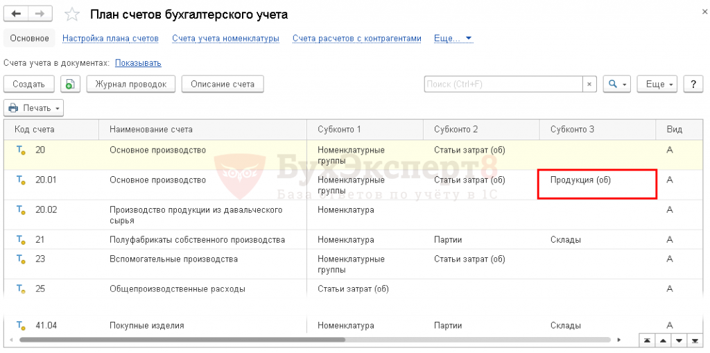 Мы видим, что в 1С сформирована проводка бухучета, корректирующая себестоимость продукции: Дт 43 Кт 20.