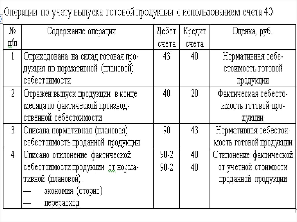 Если организация решила воспользоваться сч. 40, то из производства готовая продукция поступает в дебет этого счета по фактической себестоимости (проводка Д40 К20 (23)). На 43 счет продукция приходуется уже по плановой себестоимости (проводка Д43 К40).