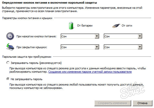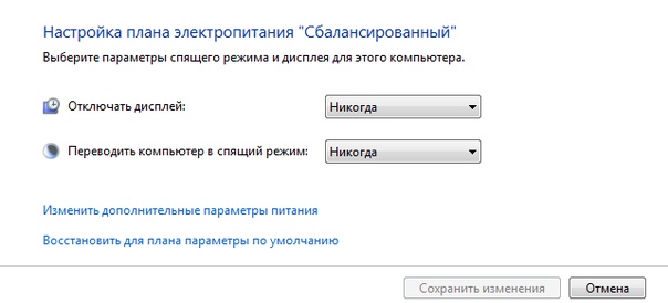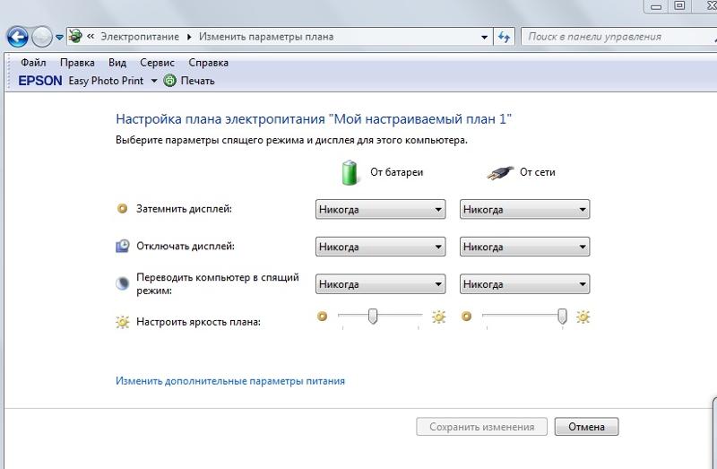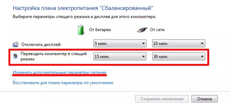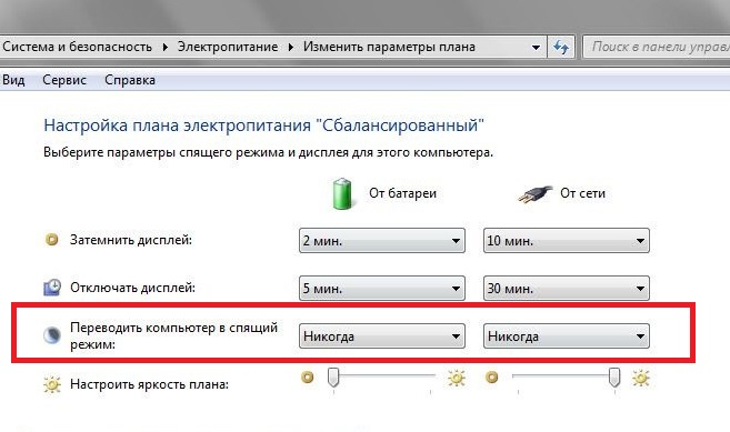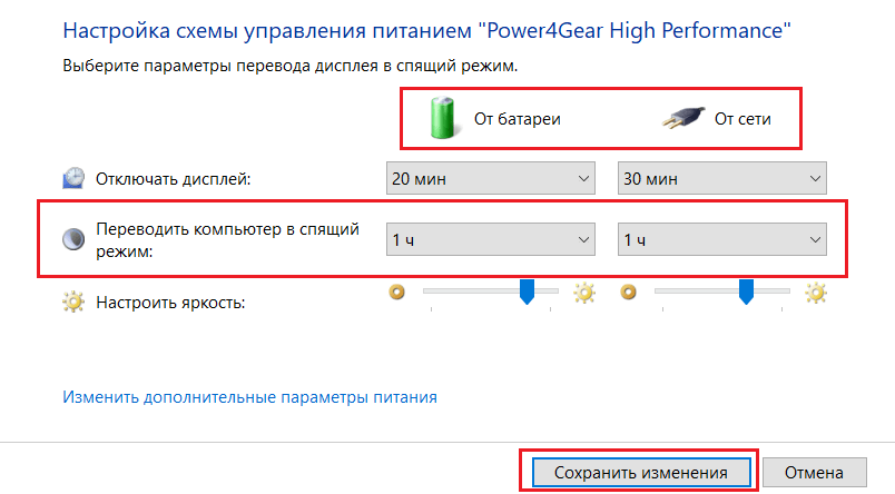 Обратите внимание: если у вас ноутбук, то время перехода в режим сна и дисплея нужно выставлять для питания от батареи и от сети.