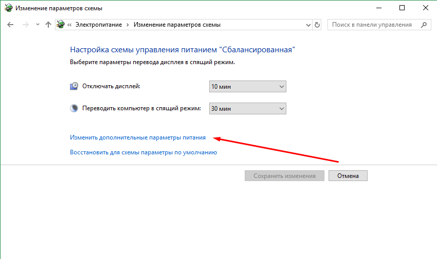 Теперь нажимаем на строчку «Изменить дополнительные параметры питания».