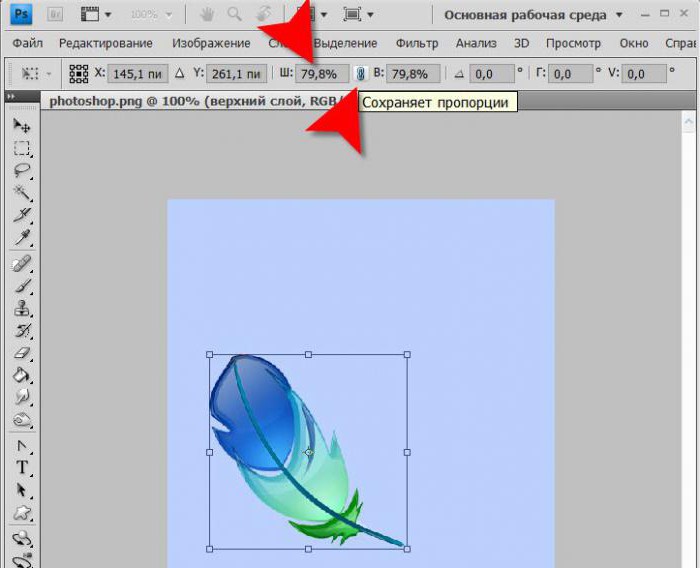 Изменение размера обычного слоя в PhotoshopЕсли вы проделаете тот же процесс со слоем, который был преобразован в смарт-объект, вы можете сжать и изменить размер слоя по своему усмотрению, и он останется таким же четким: