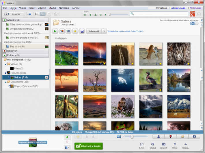 Кроме того, приложение тесно интегрировано с онлайновым хранилищем изображений с таким же названием, что позволяет без проблем публиковать снимки в Интернете и делиться ими с друзьями, родственниками и другими пользователями. Однако этим перечень задач, решаемых с помощью Picasa, далеко не ограничивается.