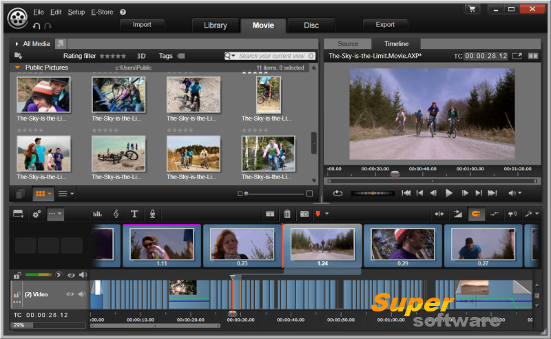 Поддерживая видео 4K, HD и 360 градусов, Pinnacle Studio 24 Ultimate также предлагает динамические переходы, прозрачность дорожек и покадровую анимацию. Дополнительные возможности включают: