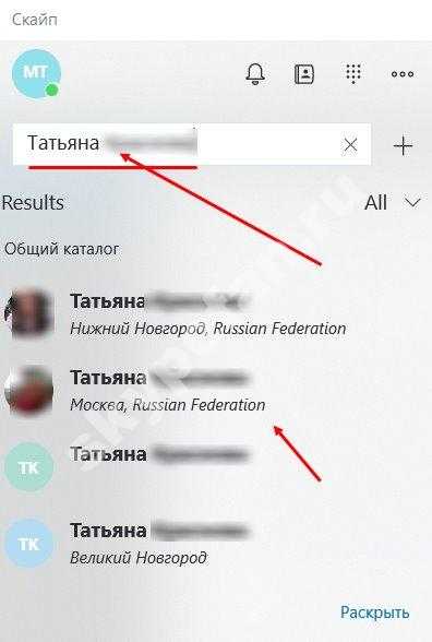 Вы можете использовать несколько способов для поиска в справочнике Skype. Каждый фрагмент информации, который вы добавляете в поле поиска, помогает сузить список результатов поиска. Вот несколько примеров: