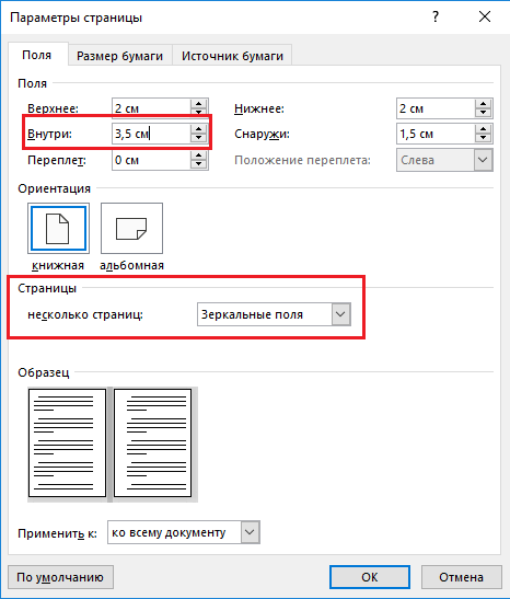 Настраиваем размер полей заданных в MS Word по-умолчанию