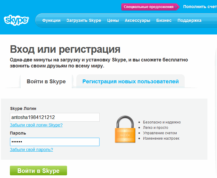 Нажимаем «Войти в Skype»