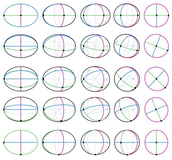 5. Через любые две диаметрально противоположные точки можно провести множество больших окружностей для сферы или кругов для шара.