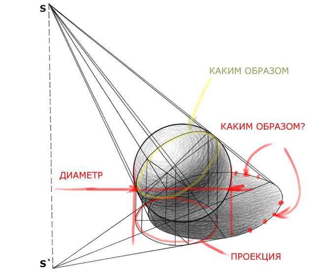 О- центр сферы. ОС- радиус сферы R. DC-диаметр сферы D. D=2R