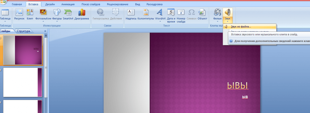 Добавление звука к слайду 266