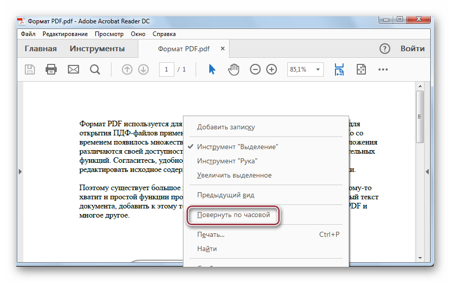 - Используйте программу для чтения PDF, чтобы открыть документ, который вы хотите повернуть