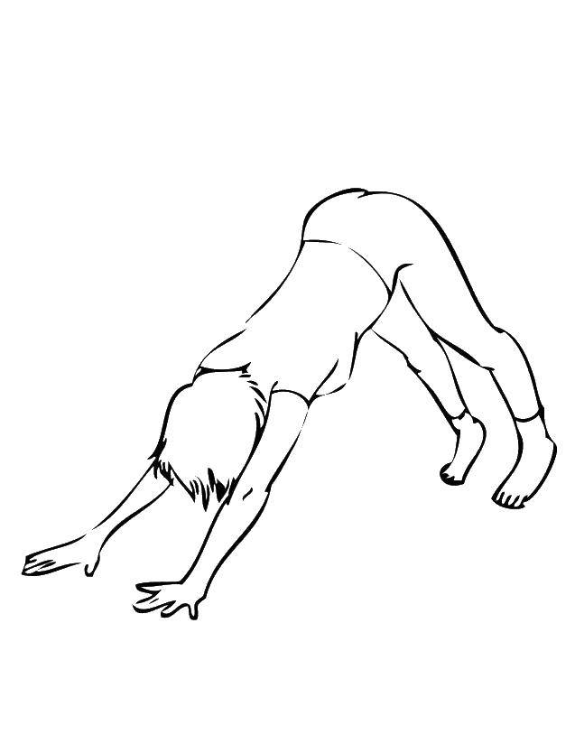 Для начала нужно сесть на корточки и ладони разместить на полу перед собой. Постепенно смещая на руки тяжесть тела, следует поднять таз, развести в стороны колени и голени завести за плечи. Затем нужно аккуратно оторвать одну стопу. Когда это станет получаться легко, пора переносить вес на руки полностью и отрывать от пола обе ноги. Середину спины нужно тянуть вверх, за спиной таз, а за тазом и ноги. Усложнить задачу можно, если пытаться выпрямить руки в локтях.