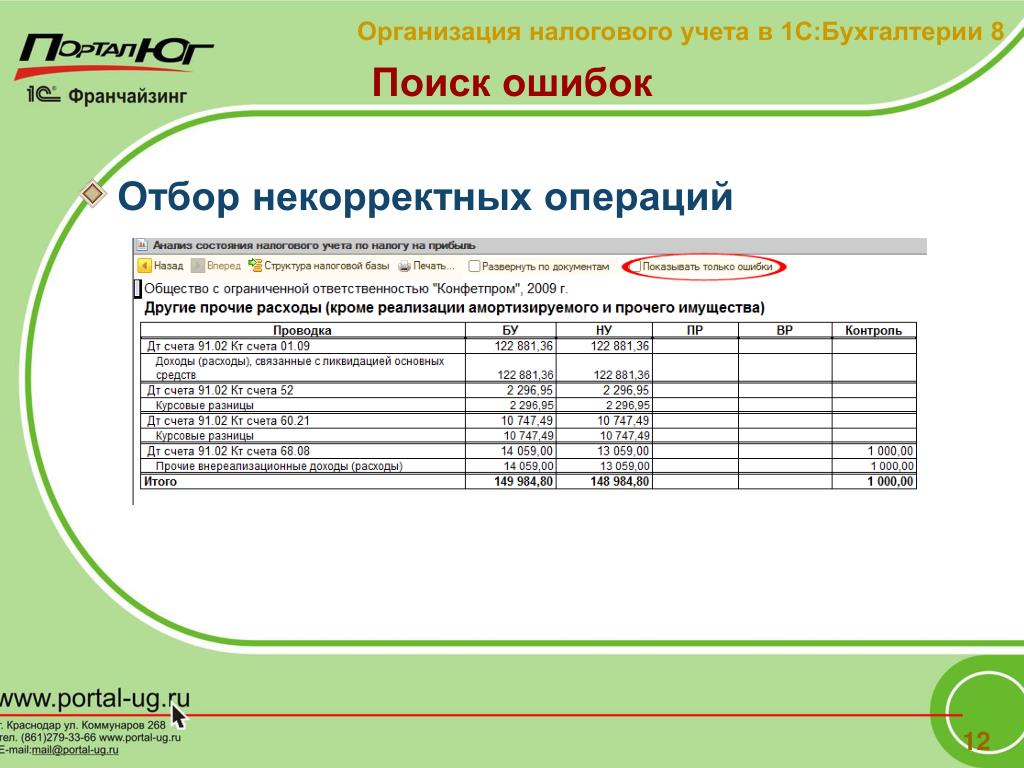 Отчет Анализ по налогу на прибыль позволяет своевременно выявить ошибки данных учета.