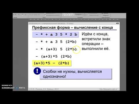 Префиксная и постфиксная форма записи. 10 класс. | Презентация к уроку по информатике и икт (10 класс) на тему:
