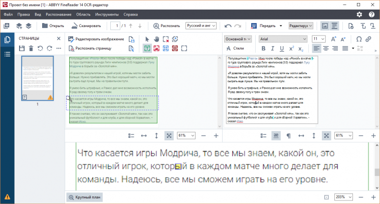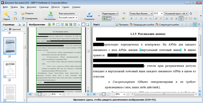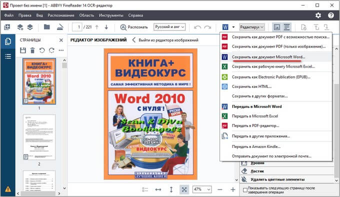 При работе с документом ABBYY FineReader доступны следующие операции: