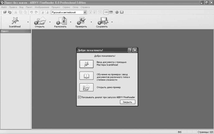 При запуске ABBYY FineReader по умолчанию открывает новый документ FineReader.