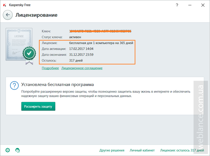 Подождите, пока отработает до конца активация, и нажмите Завершить. Вы сможете увидеть обновленную информации в окне Лицензирование. Продление Kaspersky Internet Security 2016 и 2017