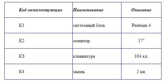 - Код комплектующих, являющееся внешним ключом для таблицы Комплектующие;