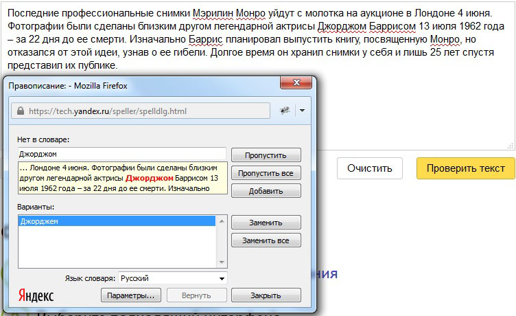 Яндекс.Спеллер