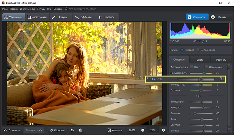 С помощью этого инструмента вы можете изменить такие параметры, как температура, блеск, живость и контрастность. Существуют также шаблоны одним нажатием, которые вы можете использовать для редактирования изображений, что делает его одним из лучших бесплатных программ для редактирования фотографий.