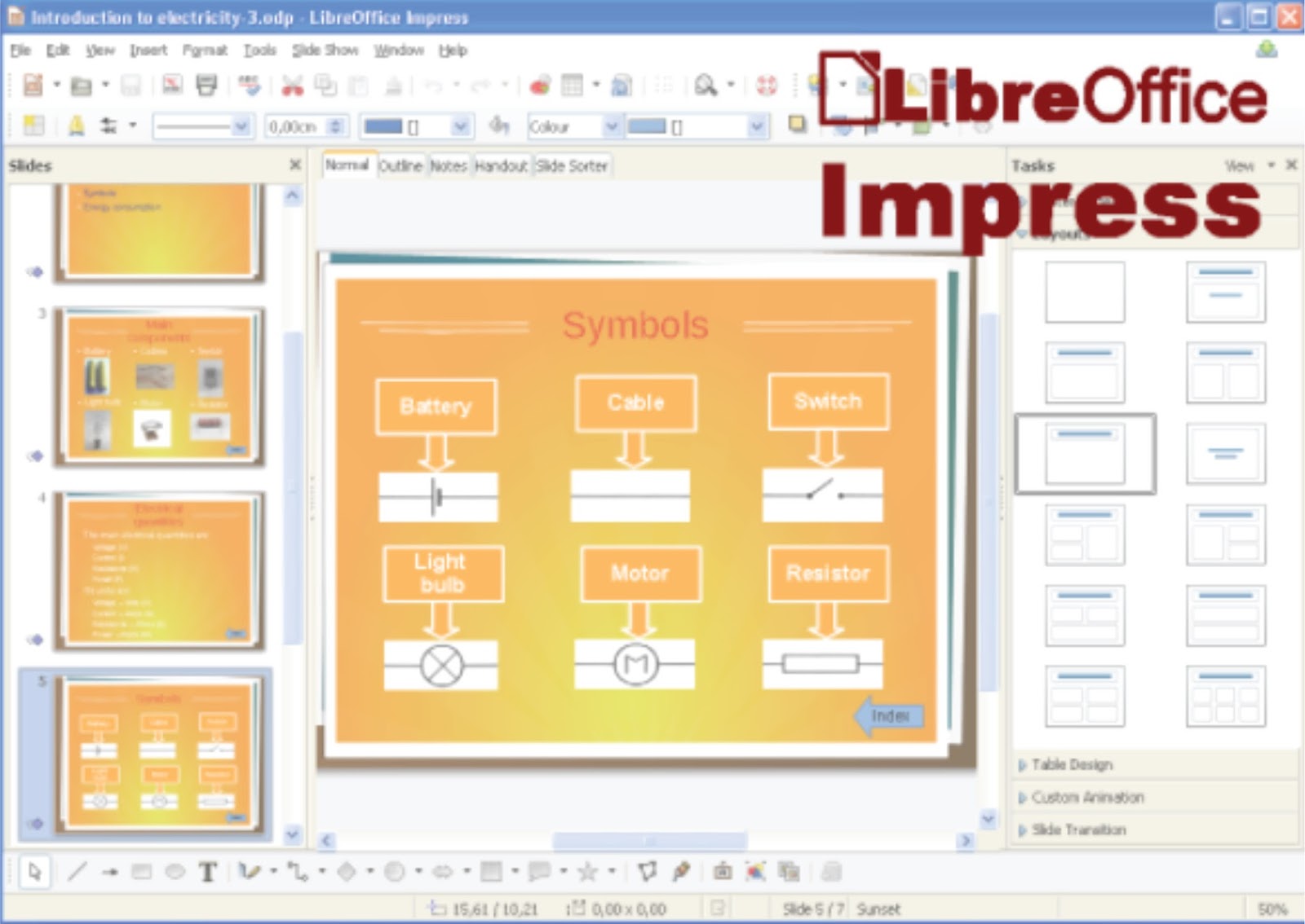 Классическое приложение, устанавливающееся на компьютер, аналог пакета MS Office, имеющее в своем составе и редактор презентаций. Вообще, программа выпускается в стандартном (бесплатном) и расширенном (платном) вариантах, однако, второй вариант я даже не рассматривал.