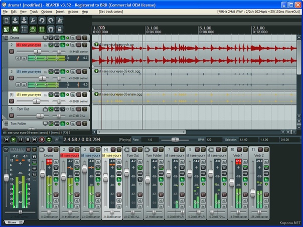 WaveLab — многоканальный редактор, который позволяет эффективно работать со звуком в HD-качестве: редактировать файлы, осуществлять монтаж, сводить треки, записывать звук. Интерфейс несколько посложнее, чем у описанных выше программ, но достаточно удобный — его можно подстраивать под себя: регулировать размер, менять местами панели управления, создавать свою собственную разметку, менять форму отображения треков.