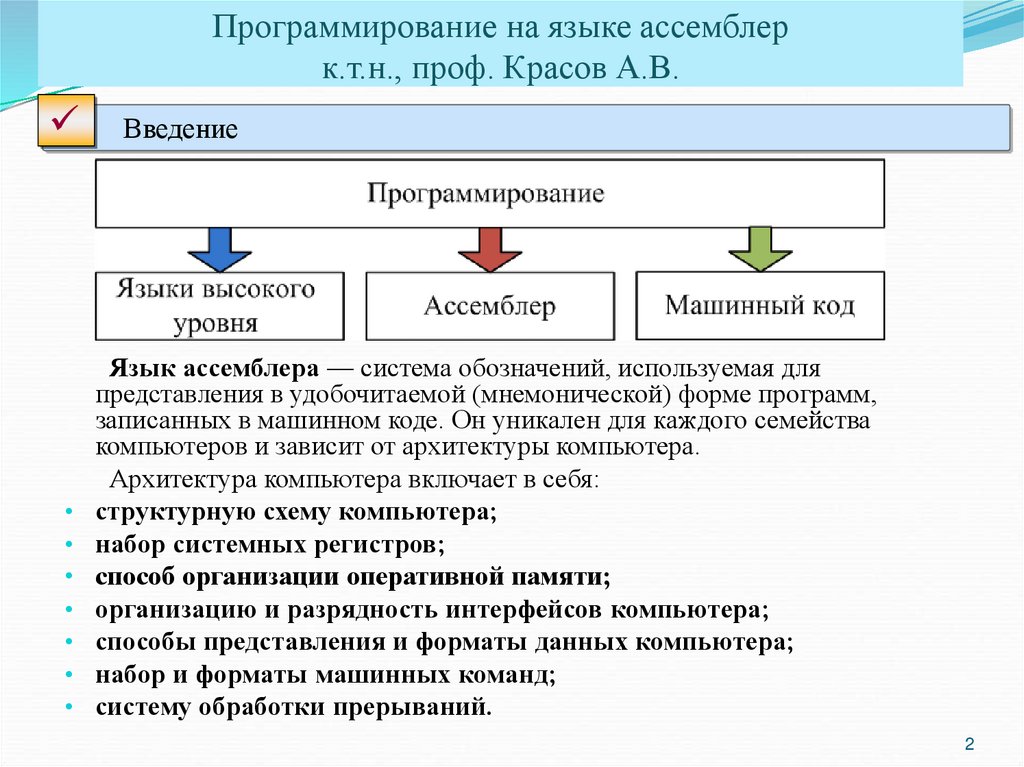 Основные (т.н. целочисленные) команды ассемблера позволяют написать практически любую программу для операционных систем MS-DOS и Windows. Количество команд ассемблера, которыми вы будете пользоваться будет расти со временем прохождения курса.