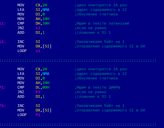 ;DATA addrs dw 0;for procedure adress prompt db ‘Are you Man or Woman [m/w]? : $’ mes_man db 0Dh,0Ah,»Hello, Strong Man!»,0Dh,0Ah,’$’ ; строка для вывода. |