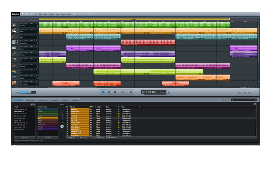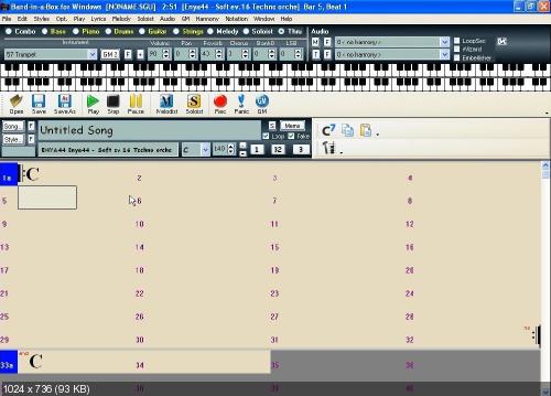 В Интернете мне случайно удалось найти раннюю версию этой программы. Программа подробно описана в книге Р. Петелина, Ю. Петелина «Аранжировка на РС». — СПб.: БХВ-Санкт-Петербург, 1999. Краткое описание программы Программа может предложить 210 (8 стилевых групп по 20 стилей в каждой, плюс загрузка еще 50 стилей с диска) различных стилей авто-аккомпанемента, в каждом из которых восемь стилевых вариаций и семь независимых оркестровых голосов. Окно запуска С помощью меню File можно открыть и прослушать еще десять предлагаемых авторами композиций в различных стилях. Управлять воспроизведением музыки можно с помощью кнопок Панели Управления или просто клавишей “пробела” компьютерной клавиатуры. Остановите воспроизведение и попробуйте поместить стрелку курсора на одну из забавных картинок – значок Стиля. Но вначале надо настроить конфигурацию драйверов (если отсутствует звук): в меню Option выбрать команду MIDI Setup. Затем в окне диалога MIDI Setup выбрать драйвера (по существу устройства) ввода и вывода MIDI-сообщений. Также выбрать тип тон-генератора, а точнее спецификацию MIDI (обычно GM Level 1 или XG Format). Окно Песен Названия остальных папок: Dance, Ballad, Pop, Rock, R&B (Ритм-н-блюз), Jazz, Latin вряд ли потребуют перевода. Стилевую группу World можно традиционно представить, как “Музыку народов мира”. В каждой их восьми групп нам открывается по двадцать значков Стиля. Иногда забавные рисунки на них несут информацию об обозначаемых ими музыкальных жанрах, иногда это просто веселые картинки, и стиль (не прослушивая его) можно узнать с помощью информационной строки. Стили насыщенные, с пышной оркестровкой. Знатоки сразу узнают в них звучание “Ямахи”. Интересно и непривычно то, что всех стилей неожиданно много для одного инструмента. Они очень разнообразны. От нескольких вальсов (традиционный, медленный, венский, кантри, джазовый) до рэйва и рэпа. Боюсь, частенько выбор подходящего для конкретной песни стиля может оказаться не простым как раз из за такого разнообразия. Гораздо проще будет разобраться с секцией Стилевых Вариаций — белым прямоугольником с восемью разноцветными надписями в правой части Палитре Стилей. Щелкая по этим надписям, вы увидите, что цвет всех значков, в какой бы группе они не находились, меняется в зависимости от того, что вы выбираете: Вступление или Окончание, Основной Вариант А или В, или один из четырех возможных переходов – Заполнение между А и В. При выборе перехода (например, Fill in AB) программа предложит варианты: либо просто добавить один такт за тактами части А (Insert One Measure), либо заменить последний такт в части А (Replace Previous Measure). В первом случае песня увеличивается на один такт, во втором — нет. Вариантов очень много. За один раз все, пожалуй, и не прослушаешь. А ведь можно еще внутри каждого из всех 210 х 8 вариантов оркестровых стилей менять, убирать и добавлять независимо один от другого семь оркестровых голосов, можно, если позволяет ваше звуковое устройство менять ударные установки, можно, в конце концов, внутри одного произведения соединять различные стили и их вариации. Как же начать работу по написанию партитуры с помощью Наглядного Аранжировщика? Откройте Окно Песен и стрелкой мыши, превращающейся в символ руки, вытащите из Палитры Стилей на чистое поле внизу (на Дисплей Секвенсора) значок подходящего для вашей пьесы стиля. Прежде окрасьте ег