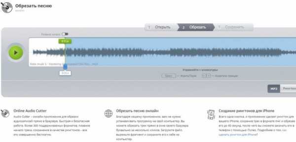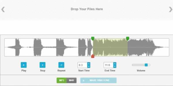 Make Your Own Ringtone – это одна из самых удобных онлайн программ, функционал которой нацелен на создание оригинальных рингтонов. В отличие от сервиса Online MP3 Cutter, программа Make Your Own Ringtone использует около 16 различных эффектов наложения на запись.