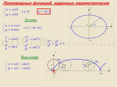 Объяснение урока: Производные параметрических уравненийВ этом объяснении мы узнаем, как найти первую производную кривой, заданной параметрическими уравнениями, и найти уравнения касательных и нормалей к кривым. Параметрические уравнения — это способ выражения переменных в нашем уравнении через параметр. Например, если у нас есть декартово уравнение вида 𝑦=𝑓(𝑥), мы можем выразить 𝑥 и 𝑦 через параметр 𝑡: 𝑥=𝑔(𝑡),𝑦=ℎ(𝑡). Эти параметрические уравнения будут описывать ту же самую кривую, что и 𝑦=𝑓(𝑥), только в другой форме. Примечание:Параметрические уравнения могут использоваться в сочетании с любой системой координат, не только декартовой. Например, если бы мы хотели параметризовать некоторые полярные координаты, мы бы выразили 𝑟 и 𝜃 через параметр. Запись уравнений в параметрической форме имеет множество различных применений. Это может значительно упростить написание отношений «один ко многим», например, уравнений эллипсов, кардиоид и лимаконов, которые обычно сложнее записать в декартовой форме. Существует метод, который мы можем использовать для нахождения производной уравнения в параметрической форме без необходимости преобразовывать параметрические уравнения обратно в декартову форму. Формула, которую мы можем использовать, выглядит следующим образом. Определение: производная параметрического уравненияПусть 𝑓 и 𝑔 — такие дифференцируемые функции, что мы можем составить пару параметрических уравнений, используя 𝑥 и 𝑦: 𝑥=𝑓(𝑡),𝑦=𝑔(𝑡). Тогда мы можем определить производную от 𝑦 по 𝑥 как дд𝑦𝑥=дддд когда дд𝑥𝑡≠0. Давайте обсудим, как мы можем прийти к этому уравнению. При этом нам нужно будет использовать цепное правило, поэтому мы должны напомнить себе его определение. Определение: правило цепи (ℎ(𝑥)) дифференцируема в 𝑥, а ее производная 𝑓′ определяется выражением 𝑓′(𝑥)=ℎ′(𝑥)𝑔′(ℎ(𝑥)).Мы можем начать с наших параметрических уравнений 𝑥=𝑓(𝑡),𝑦=𝑔(𝑡). Предположим, что мы можем записать эти параметрические уравнения в декартовой форме так, что