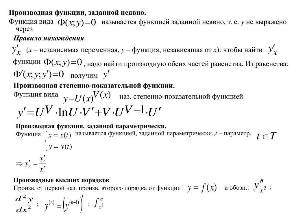Бывают случаи, когда для исследования функции требуется заниматься поиском производной по х. Рассмотрим формулу производной параметрически заданной функции вида yx’=ψ'(t)φ'(t), поговорим о производной 2 и n-ого порядка.