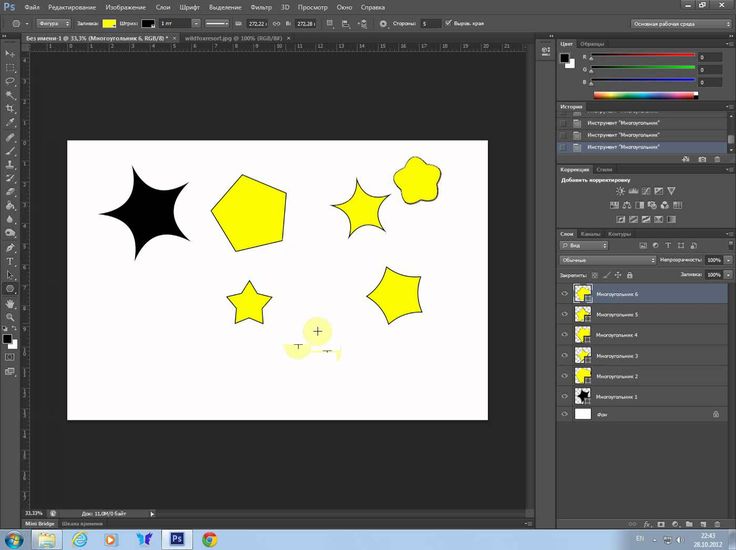 Тут есть один важный нюанс — как только Вы закончите протаскивать курсор, отпустите сначала левую клавишу мыши, а уже после клавиши мыши отпустите клавишу Shift, после чего Phoptoshop также заполнит фигуру выбранным цветом.