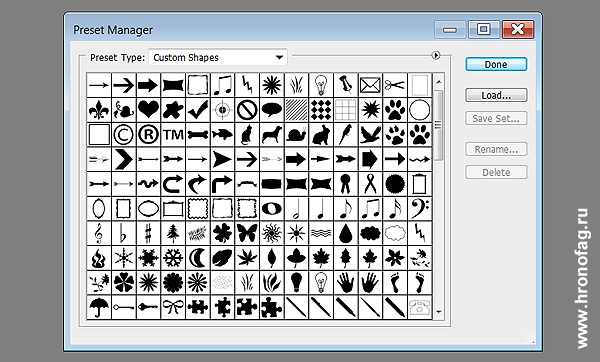 Если вы хотите навсегда оставить выбранные фигуры, скопируйте файл в системную папку фотошопа. Обычно папка с фигурами находится здесь: «C:\Program Files\Adobe\Adobe Photoshop CS6\Presets\Custom Shapes»