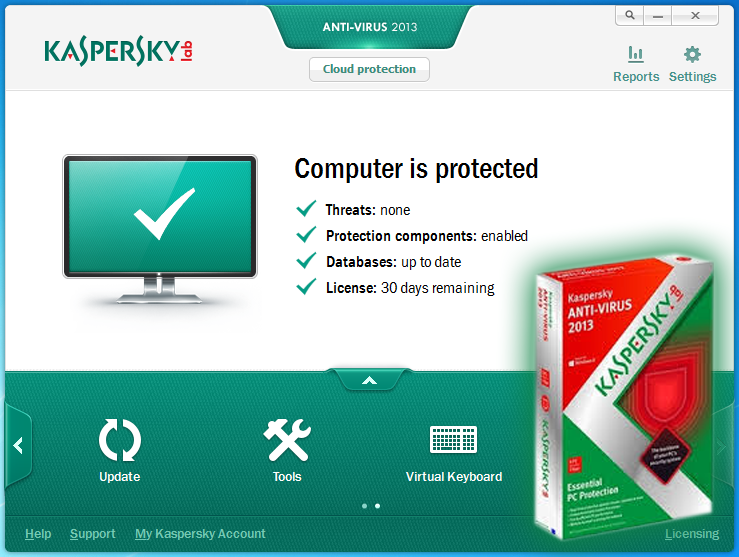 В моем тестировании Касперский использовал очень маленькое количество оперативной памяти, поэтому работа с этой спецификацией может не вызвать у вас слишком много проблем. С точки зрения общего воздействия на систему, программа не была так хороша для процессора i3 с частотой 1,8 ГГц, поэтому я призываю к осторожности, если вы планируете запускать эту программу на более старой машине. Установка и настройкаУстановка Антивируса Касперского проста и быстра. В отличие от некоторых других антивирусных программ, программное обеспечение российской фирмы может быть установлено в вашей системе и готово к работе уже через 3 минуты после перехода по ссылке для скачивания. Почему установка такая быстрая? Проще говоря, это связано с тем, что «Лаборатория Касперского» решила не запускать быстрое сканирование и не загружать какие-либо обновления в процессе установки. Вопрос о том, хорошо это или нет — мой колеблется в пользу более своевременного процесса установки, который завершается готовым антивирусным решением, которое уже проверило ключевые области системы на наличие вредоносных программ. Другой подход, выбранный «Лабораторией Касперского», может сделать вас уязвимым, если вы решите не обновлять базу данных описаний вирусов или запускать сканирование вскоре после установки. Решение «Лаборатории Касперского» не внедрять обновление и сканирование в процесс установки кажется еще более странным, если учесть, насколько быстро он может выполнить и то, и другое — время может варьироваться в зависимости от количества загружаемых обновлений и файлов, которые нужно сканировать, но мой занял 90 и затем 50 секунд соответственно. Я не знаю, почему это нельзя было встроить в процедуру установки и настройки. ИнтерфейсИнтерфейс, выбранный российской охранной фирмой, неплох – серо-бело-бирюзовая цветовая схема работает достаточно хорошо, а интерфейс дает понять, полностью ли защищен ваш компьютер, с помощью сообщения в верхней части экрана. . На главной странице «Лаборатории Касперского» гордо расположены четыре большие кнопки. Один из них предназначен для функции сканирования, что достаточно справедливо, поскольку это основная функция этого типа программного обеспечения. Другие очевидные ссылки позволяют обновить программу, задействовать виртуальную клавиатуру и читать отчеты. Хотя последнее может быть интересным, я не могу представить, чтобы многие люди тратили на него слишком много времени. Такие функции, как сканирование уязвимостей, можно найти в списке под плиткой сканирования. В предыдущих версиях было сложно найти такие функции, так как они открывались по небольшой текстовой ссылке. Служба поддержки клиентовНаличие поддержки, когда она вам нужна, является обязательным условием, тем более с антивирусным программным обеспечением. Kaspersky предлагает широкий спектр вариантов поддержки для домашних пользователей, включая круглосуточный онлайн-чат, поддержку по электронной почте, подробные руководства пользователя с ответами на часто задаваемые вопросы и форум сообщества. Эффективность защитного решения Какими бы впечатляющими ни были дополнительные инструменты, входящие в комплект поставки Kaspersky, именно производительность антивируса будет самым важным фактором для большинства людей. В этом отношении программа работает п