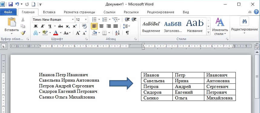 Вставить таблицу