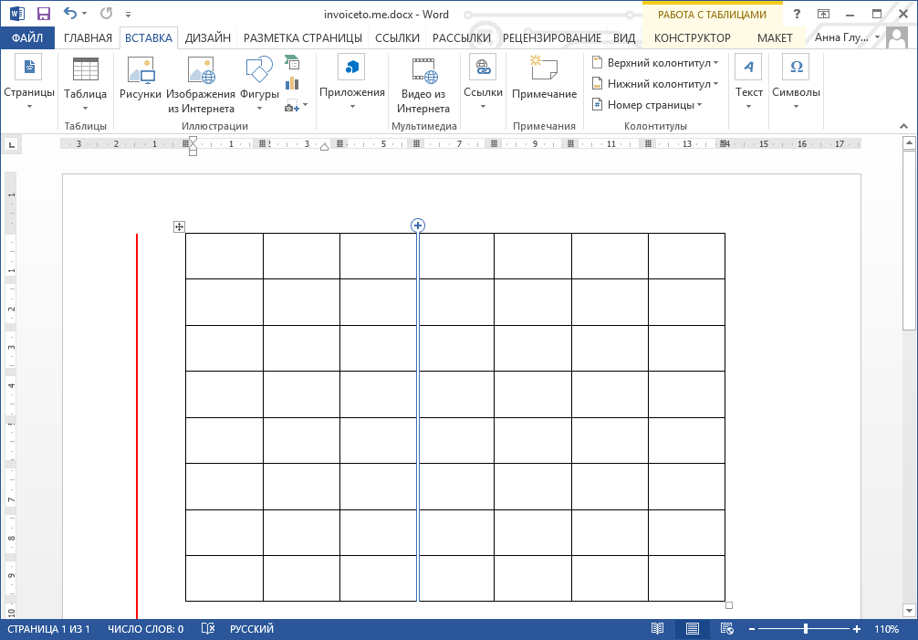 Вставка таблицы