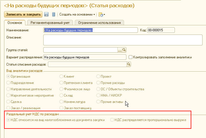 1. Ввод нового объекта и настройка списания расходов будущих периодов