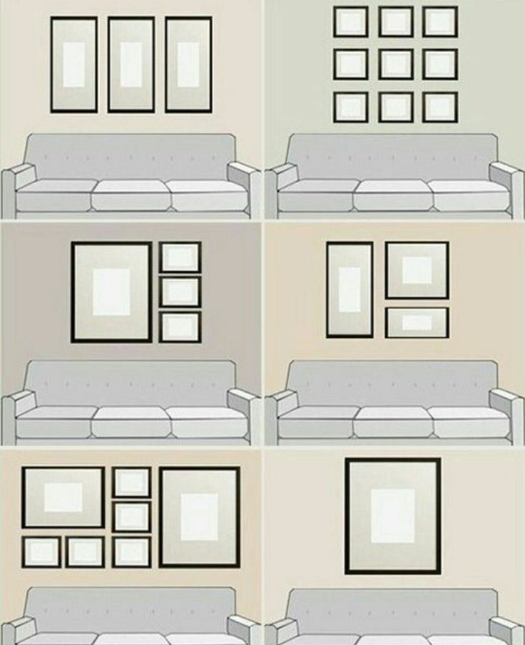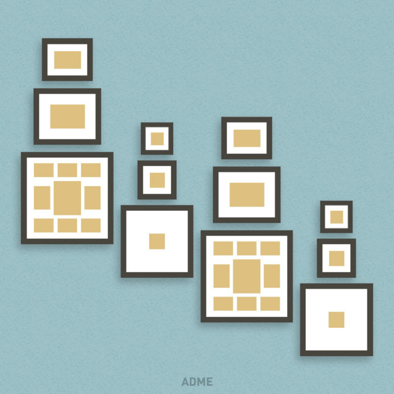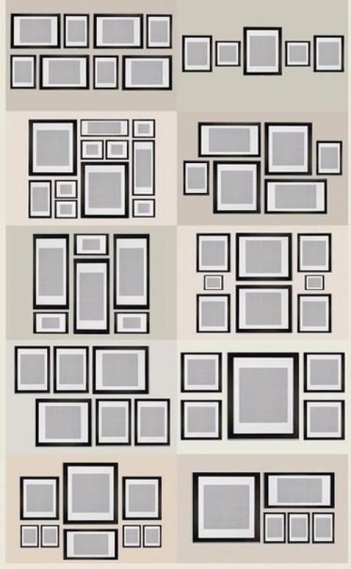 Расположение рамок на стене имеет такое же значение, как и сами картины. Точная сетка придает формальный вид, в то время как группа изображений, размещенных внутри установленного квадрата или прямоугольника, сразу же выглядит более непринужденно.