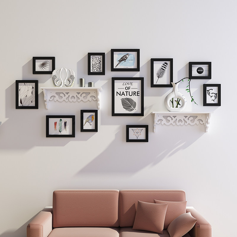 Если планируется размещение старых снимков, то подойдут искусственно состаренные рамки, вытянутые в ширину. Чёрно-белые снимки предполагают использование или черных, или белых рамок. Белые могут быть в виде красивой лепки.