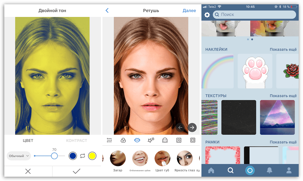 Классное приложение для ретуширования портретов. В PhotoDiva можно устранить недостатки кожи одним касанием, применить необычные эффекты – винтажные, цветовое тонирование, имитацию фотопленки или оттенков кинофильма. Также вы сможете обрезать изображение, создать виньетку, настроить баланс белого.
