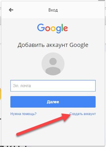 Откроется форма с полем email для ввода. Жмем “создать аккаунт”.