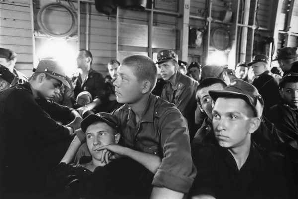 Например, драматичный снимок молодых солдат был снят следующим образом. Новобранцы летели в транспортном вертолете Ми-26 на место боевых действий в Грозный. Я был рядом с ними. Сперва снимал их открыто, но кто-то из них постоянно смотрел в камеру и это лишало кадр естественности. Тогда я прекратил съемку и сделал вид, что чищу фотоаппарат (снял призму). Солдаты потеряли ко мне интерес, отвлеклись, в этот момент и был сделан снимок широкоугольным объективом (24 мм).