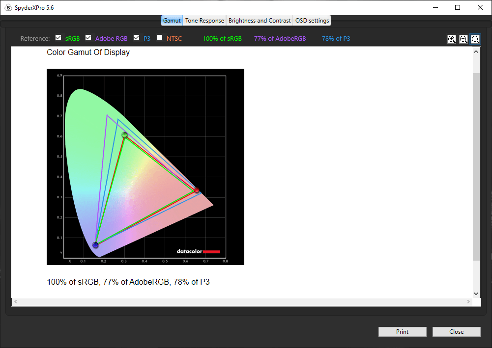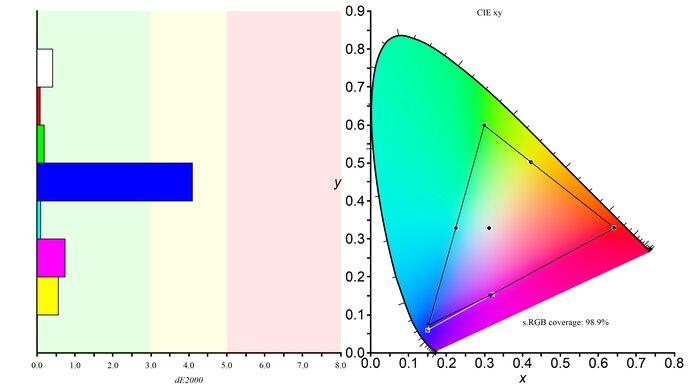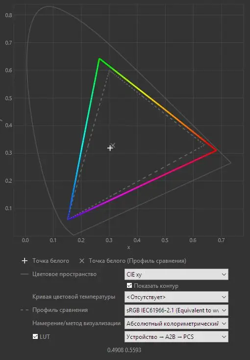 Несмотря на то что охватываемый им цветовой спектр равен всего 35%, этого вполне достаточно для нужд любителей фотосъёмки и обработки фотографий.
